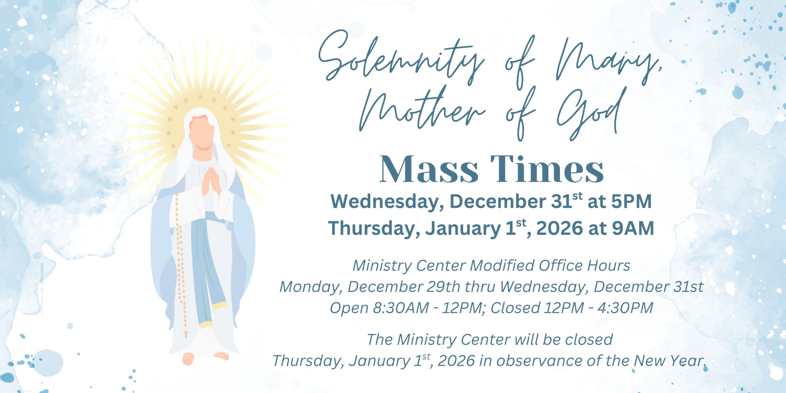 Sunday Mass - 7:30, 9:00, 11:00AM WEEKDAY LITURGIES (MON-FRI) Weekday Mass - 8:00AM |