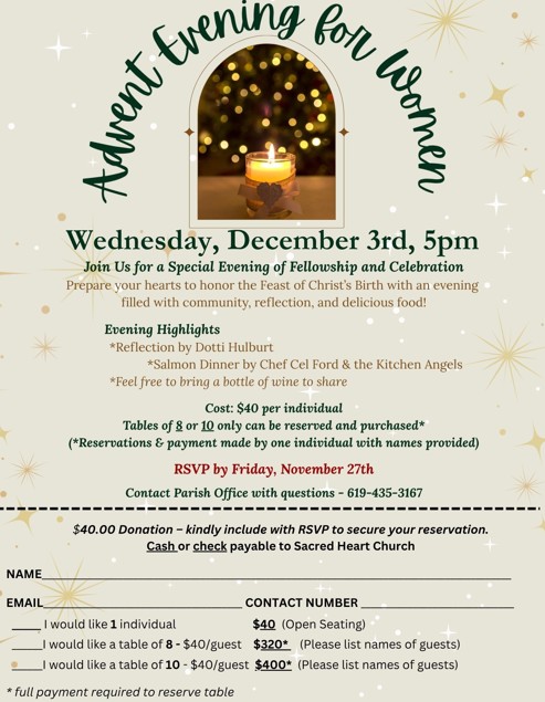 Sacred Heart Coronado > Get Your Tickets Today for the Advent Women’s Dinner!
